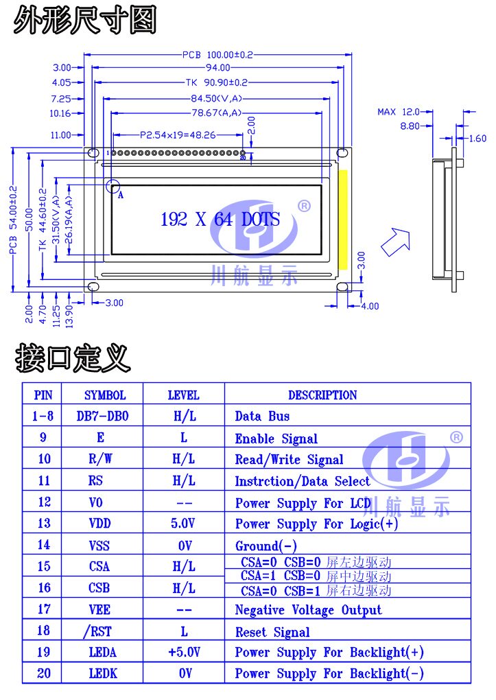 100x54mm19264 LCD screen 19264 liquid crystal module selected CH19264J-219264 production manufacturer