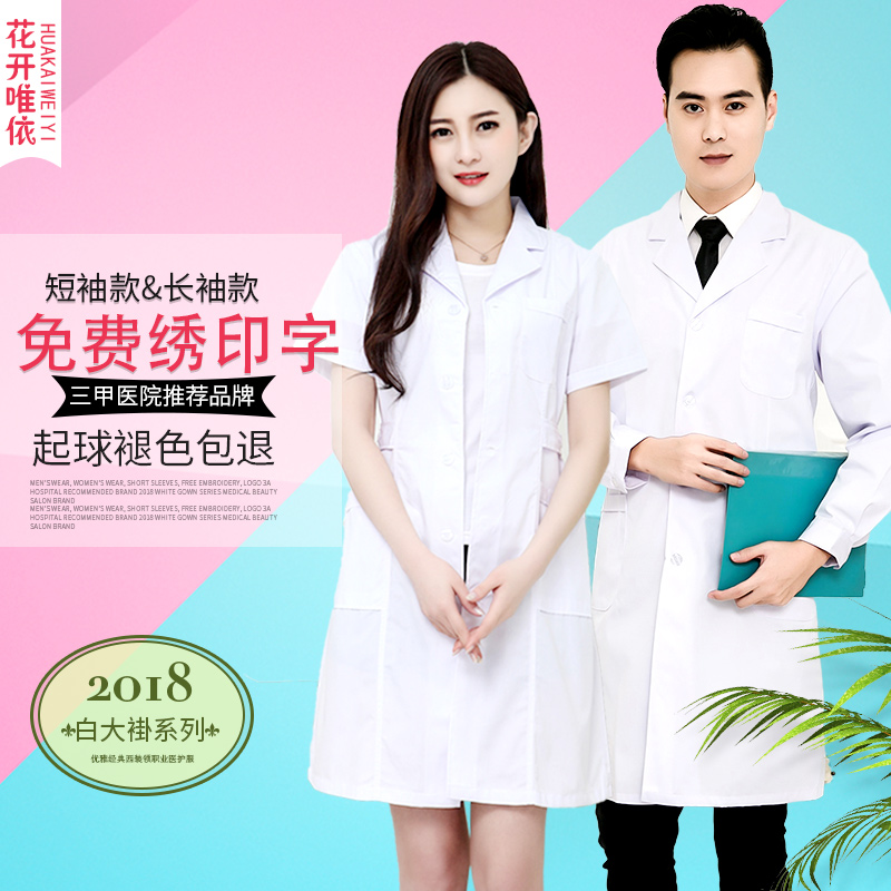 White coat long sleeve male and female doctor nurse's clothing summer short sleeve beauty experimental clothing pharmacy pharmacy work doctor's clothing