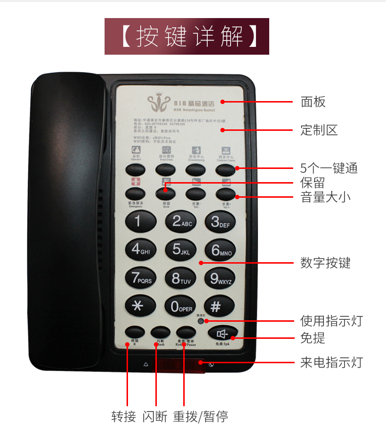 Kent Fields Hotel Telephone Guesthouse fixed landline Airport Express Hotel Hotels Customizable panel LOGO Areas