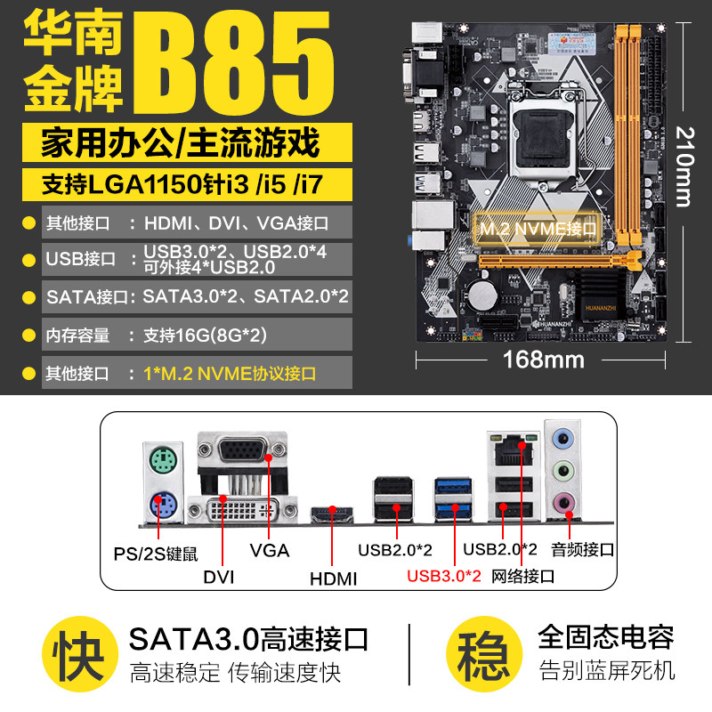 South China Gold B85 H81plus Brand New Desktop Pc Board CPU Set 1150-pin i5 4590itx