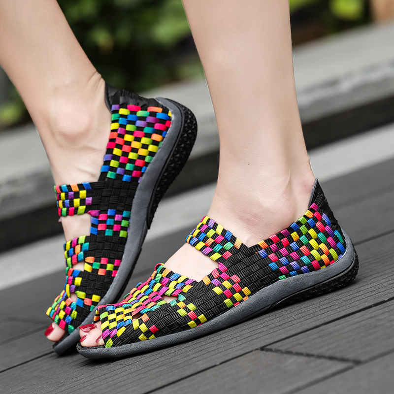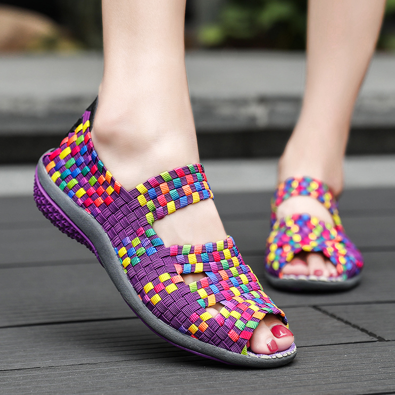 Pure hand-made flat weaving shoes women summer artisanal shoes mommy soft soles woman comfortable middle old grandmother shoes