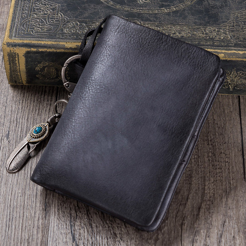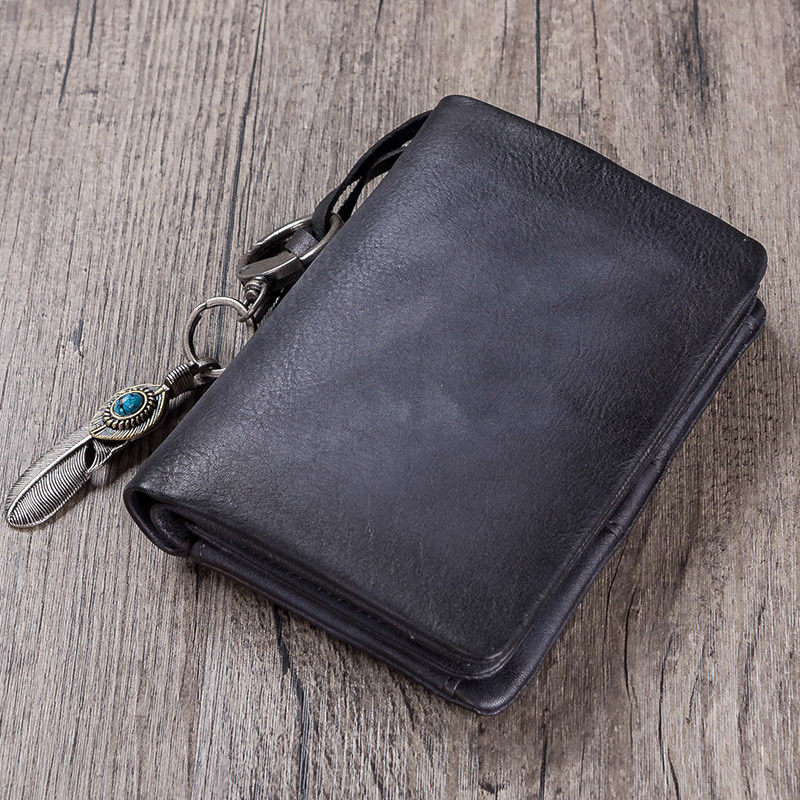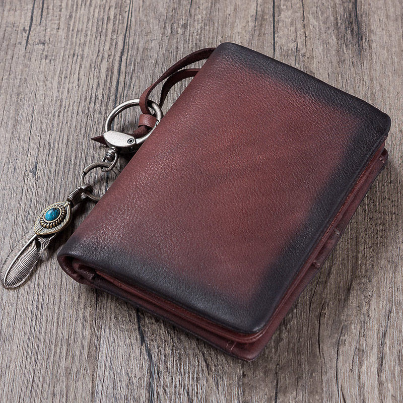 Lady Retro Handmade Leather Clip Woman Money Gripping Head Layer Bull Leather Wallet Woman short Genuine Leather Slim Fresh Folding Korean version