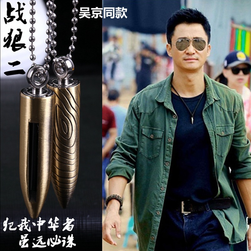 (Zhu Rong)Wolf bullet necklace 10,000 matches windproof kerosene lighter Comrade memorial car pendant