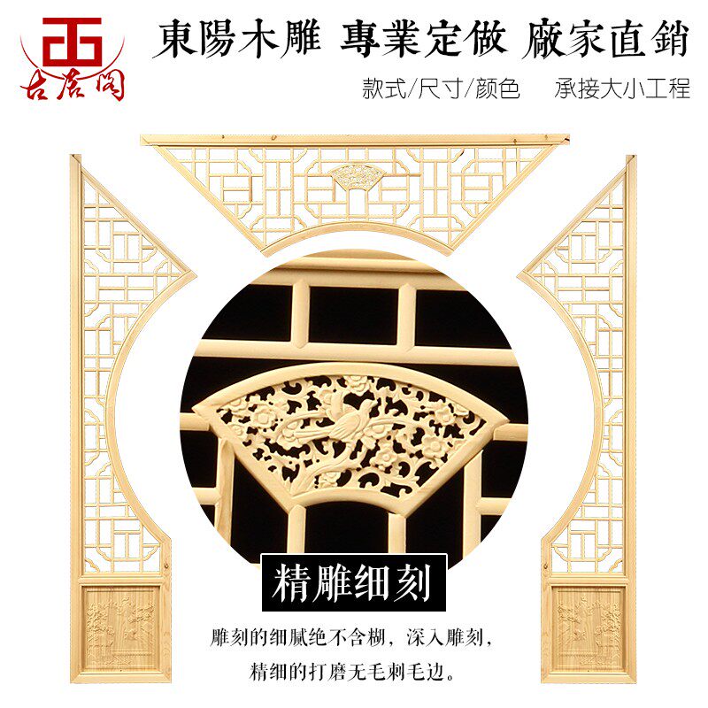 Solid wood flower moon cave door partition Chinese antique living room mask arch shaped mask to the moon arch customized