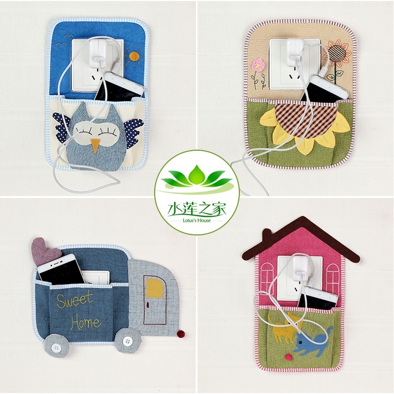 Cartoon switch cloth sticker art Charging socket set Wall sticker switch set Pastoral creative belt pocket Mobile phone protection belt pocket