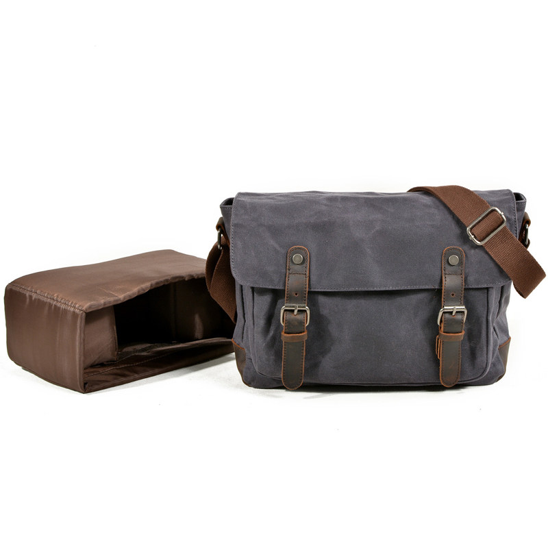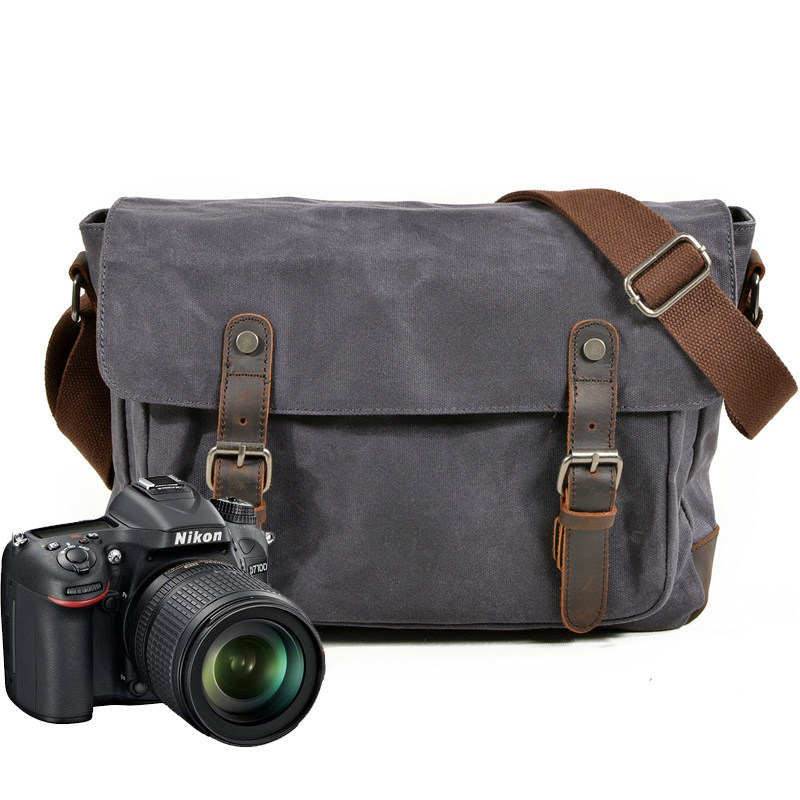 Qigusi waterproof single-eye camera bag retro oil wax canvas wear-resistant shoulder bag outdoor leisure travel messenger bag
