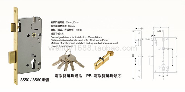 Taihao workshop Taihao copper lock all copper simple European door bedroom door lock door handle TH85-105116