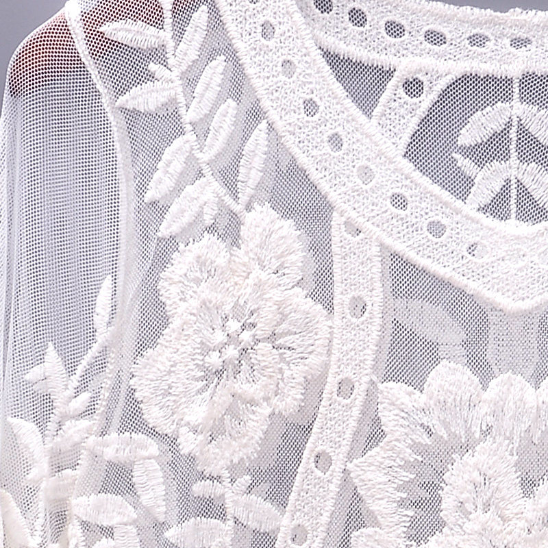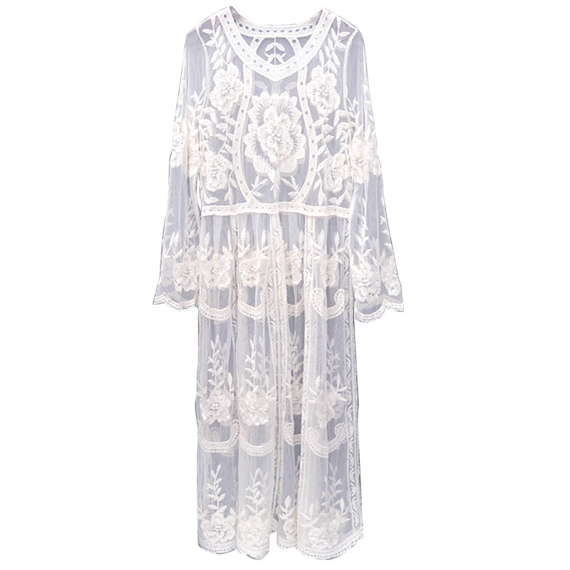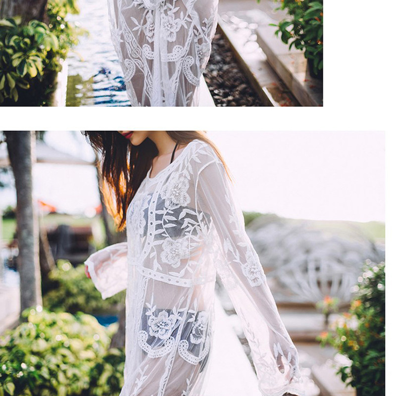 Bikini sunscreen shirt long version of skirt swimsuit lace hollowed-out beach jersey woman long sleeve white cover with big code