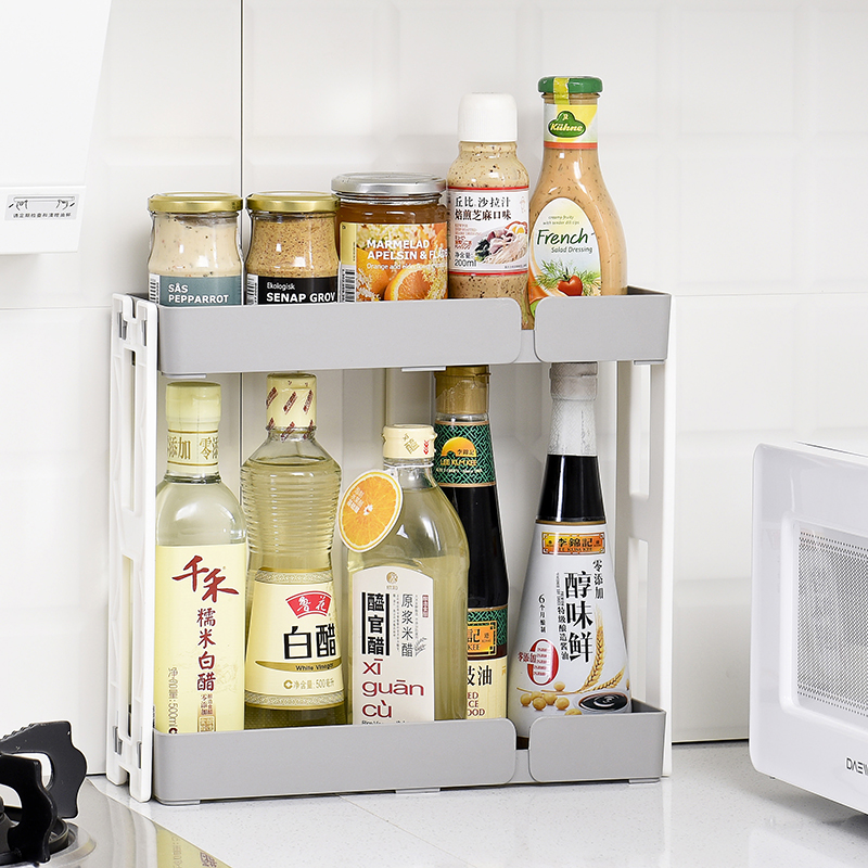 Double-deck kitchen desktop conditioner bottle conditioner shelf household floor plastic bathroom frame