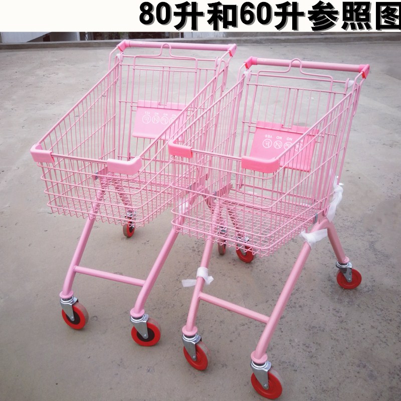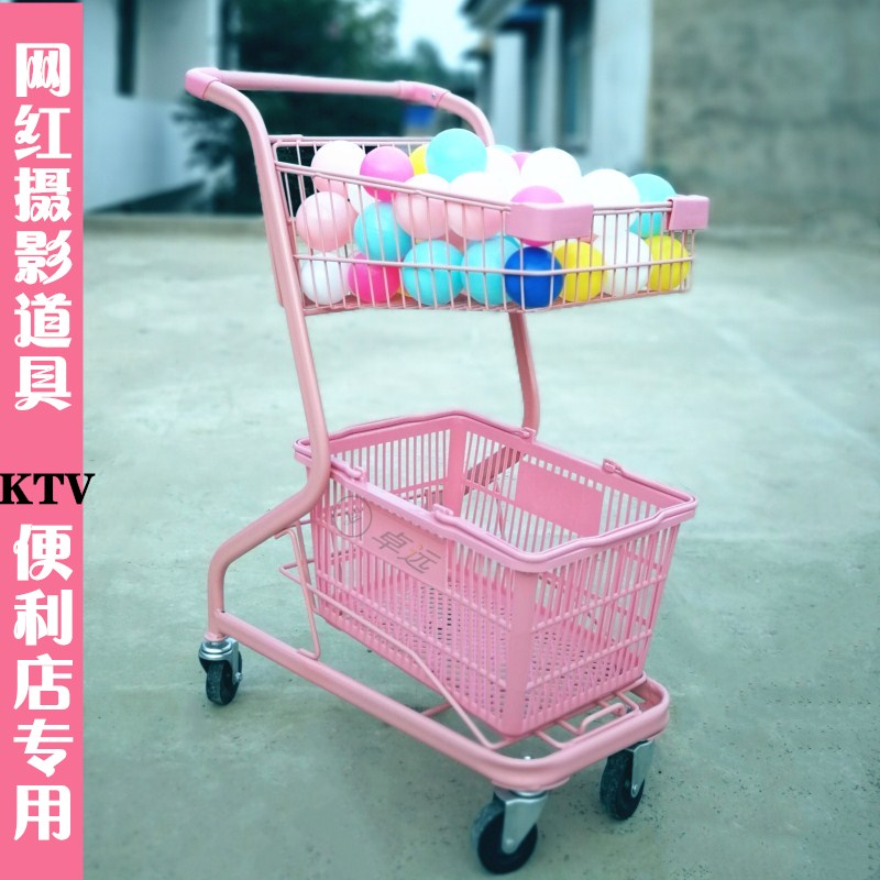 Yellow Supermarket Cart Double-deck Supermarket Shopping Cart KTV Convenience Store Buying Catering Photo Pink Cart