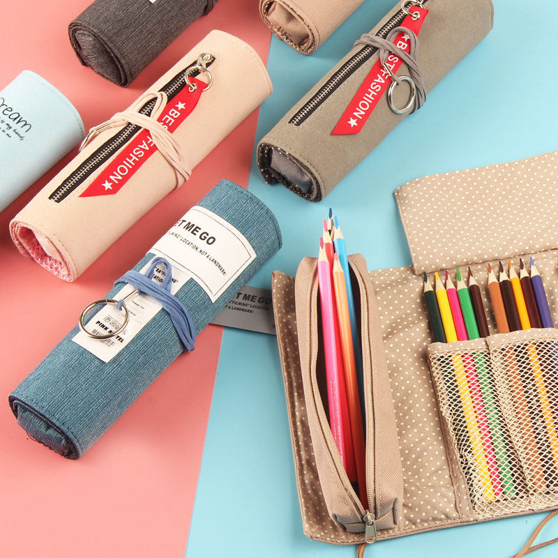 Pen Bag South Korea Brief Wind Girls Little Fresh Pen Curtain Rolls Style Pen Bag Stationery Bag Lead Pencil Case High School Students Individuality Creative Junior High School Pen Bags
