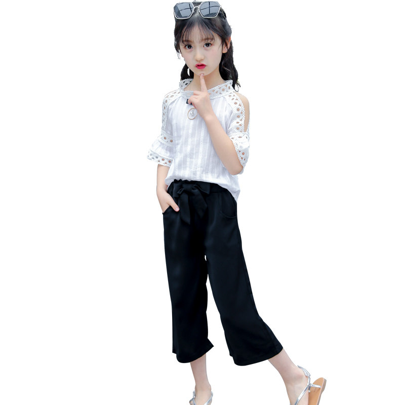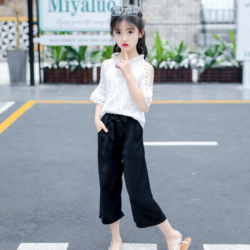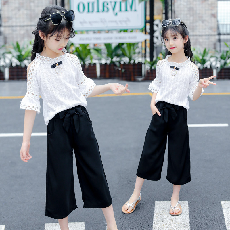 Girls Summer Summer Kids 2023 New Summer Kids Fashion Ocean Two - piece Large Girls Short - sleeved Clothes