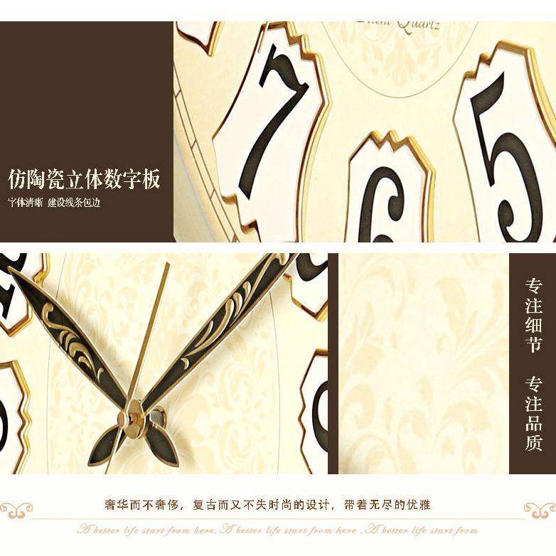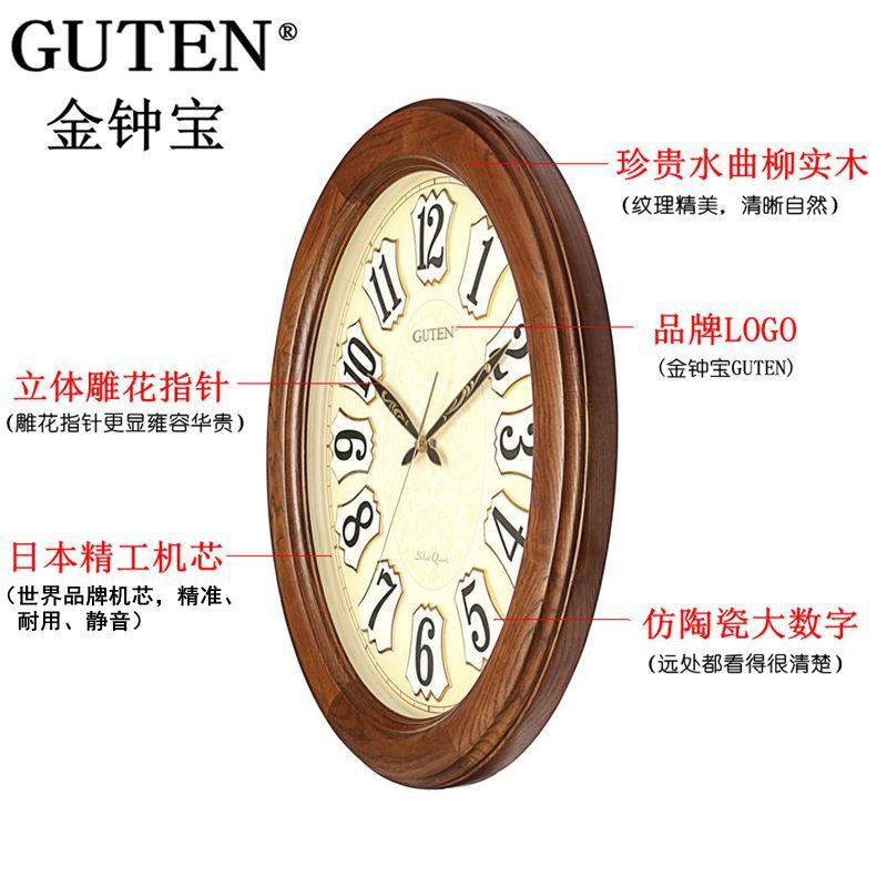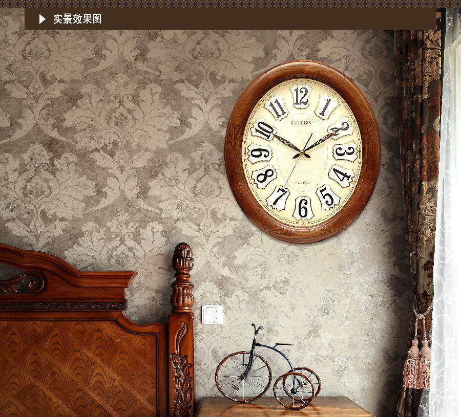 Admiralty Oval hanging bell Euro style living room solid wood large number muted hanging bell Chinese style retro creative quartz clock table-Taobao