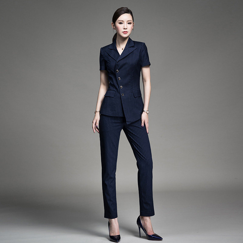 Professional suit women's summer tooling women's suit short-sleeved striped suit suit temperament formal dress women's suit overalls