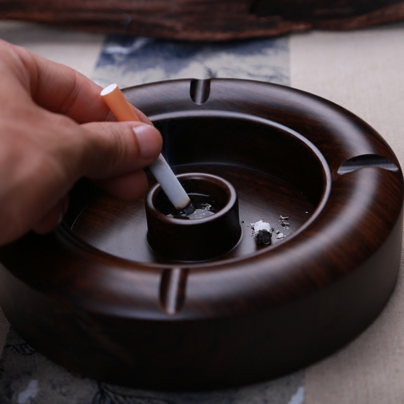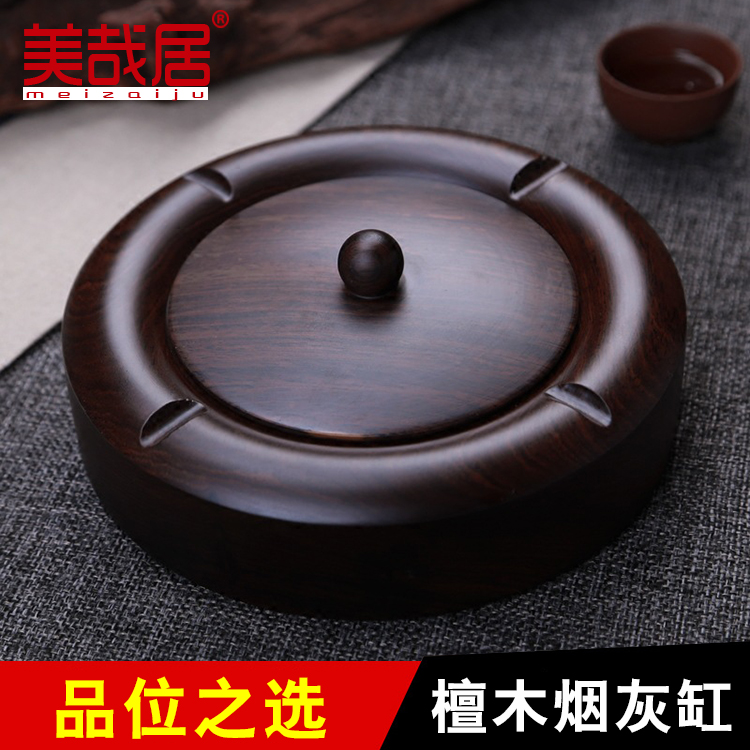 Retro Chinese ebony solid wood ashtray with lid large creative simple living room ashtray
