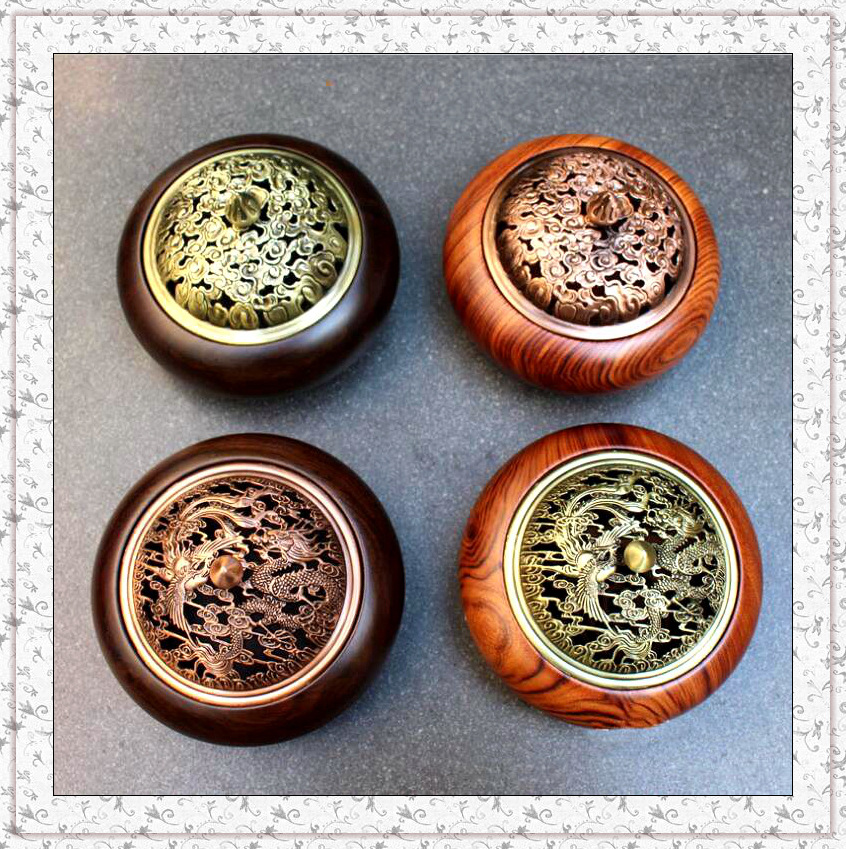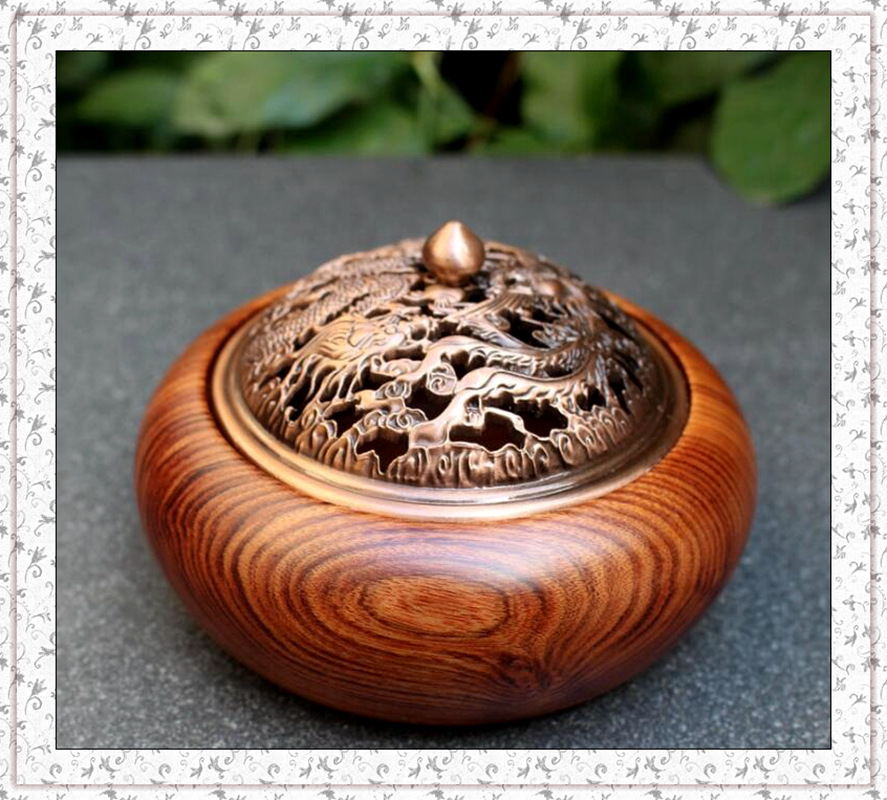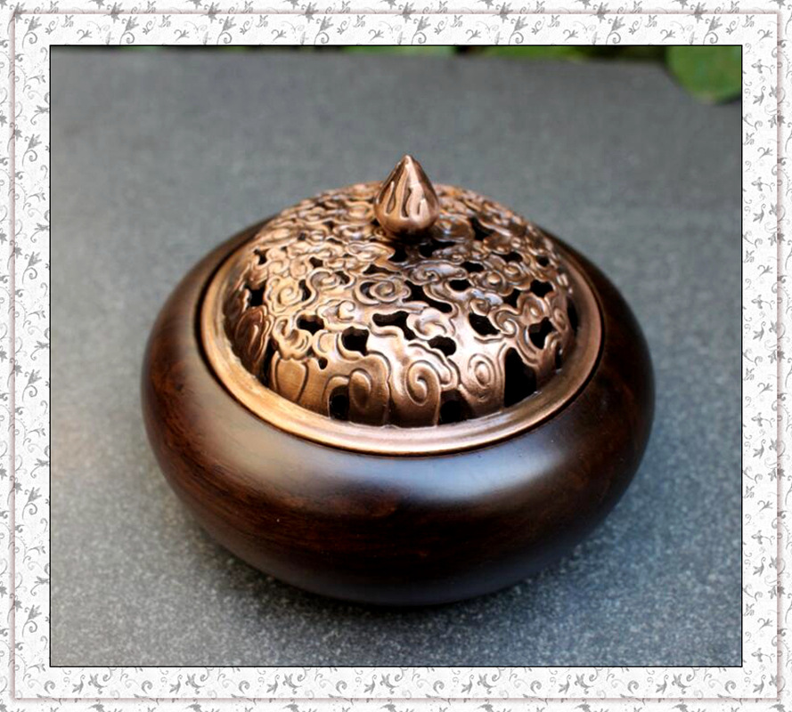 Ebony and copper incense burner, retro home agarwood, sandalwood, auspicious cloud incense, kung fu tea ceremony, solid wood ornaments
