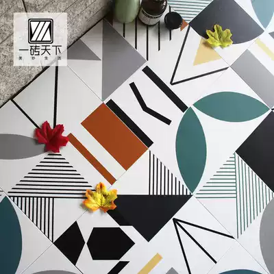 Mediterranean fresh geometric multi-color tile lines Exotic wind flower pieces Kitchen powder room wall tiles Dining room floor tiles