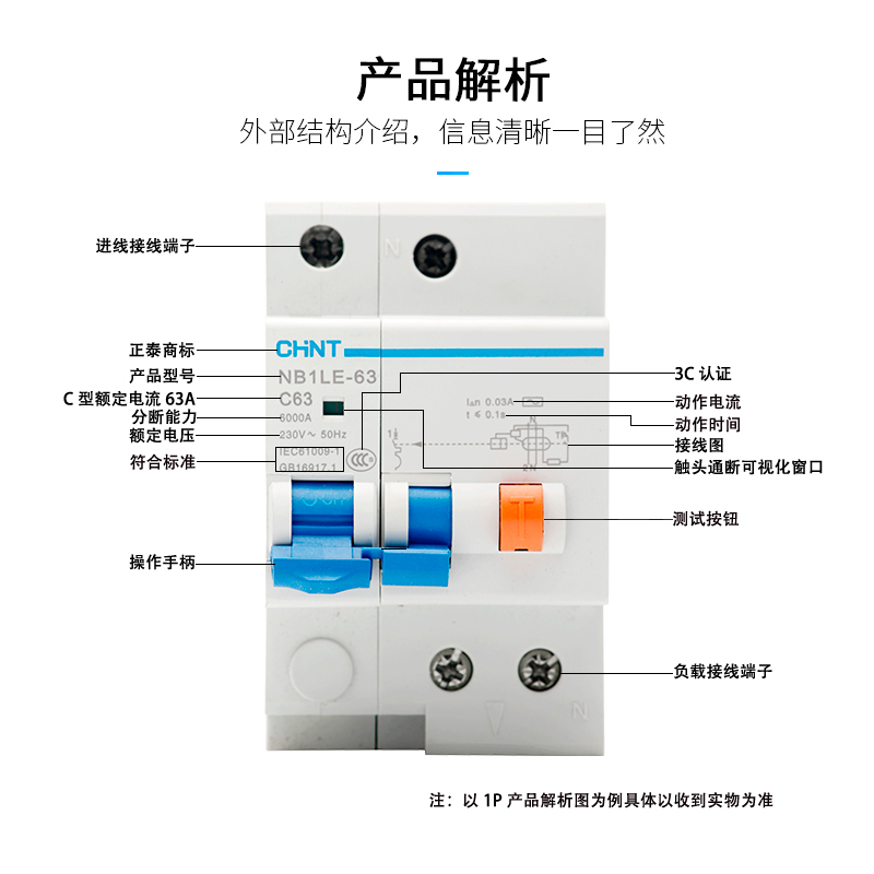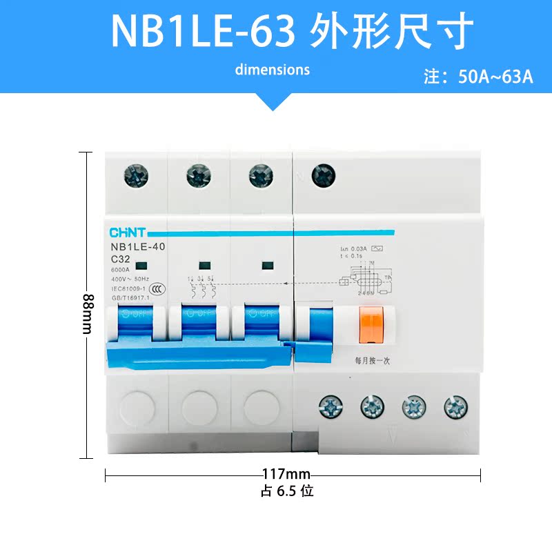 CHT electronic leakage protection air circuit breaker air switch C type NB1LE-63 3P+N C50A 63A
