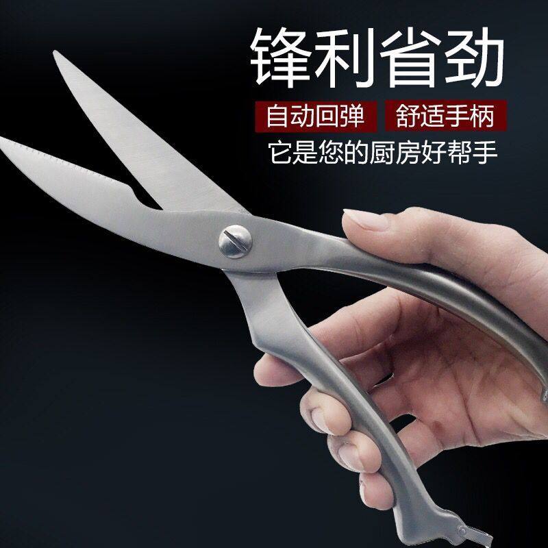 German Stainless Steel Kitchen Scissors Fish Bone Cut Powerful Automatic Rebound Chicken Bone Cut Multifunction Home Kitchen Tools