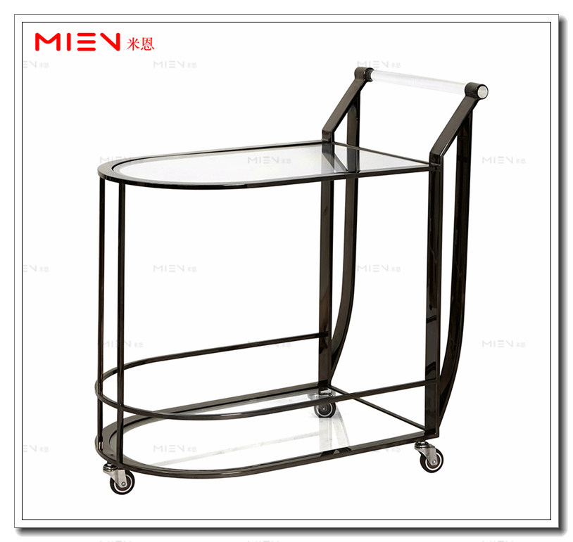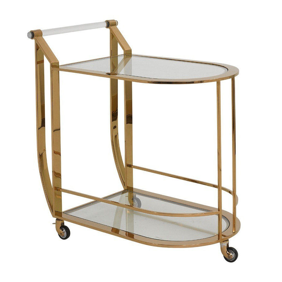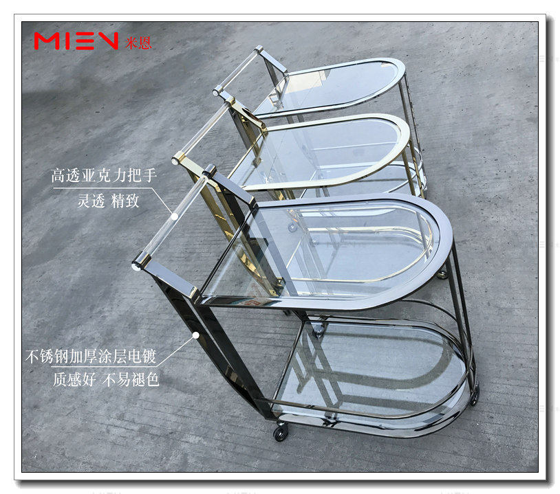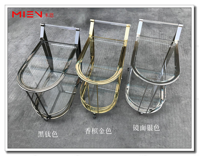 High-end Metal Stainless Steel Home 2 Floors Mobile Dining Car Titanium Alloy gold high-end hotel Double wine waterwheel cart