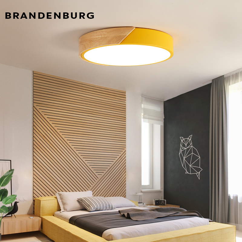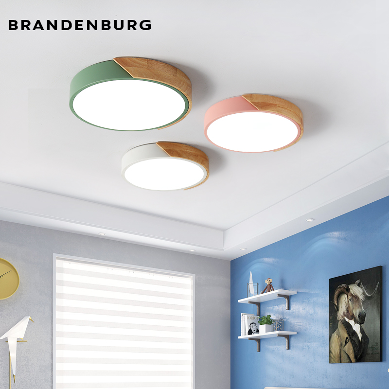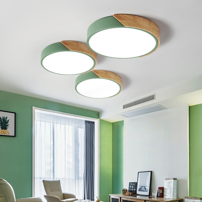 Children's bedroom LED suction ceiling lamp modern minimalist Marcaron solid wood round living room balcony Creative wood grain lamps