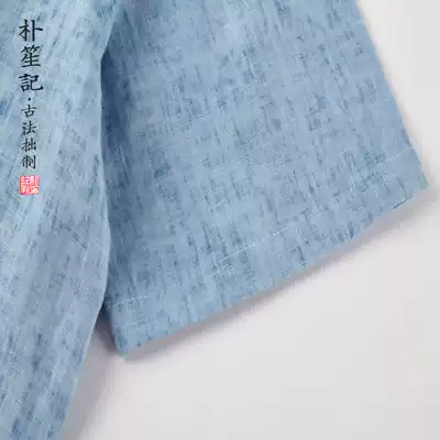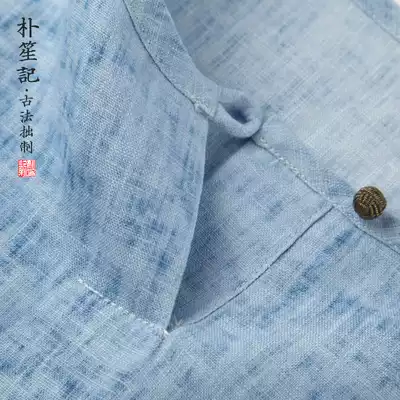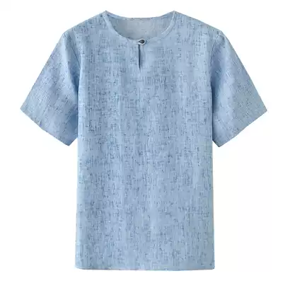 Tianqing Qi original men's linen summer loose breathable V-neck thin Zen clothing large size Chinese style sweatshirt