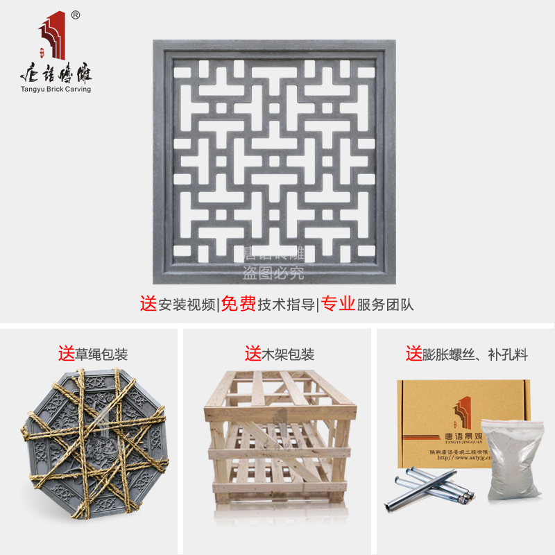 Tang-language hollowed-out flower window ancient Jianqing brick and brick carved imitation ancient relief painting Chinese film wall wall illuminated wall decoration background wall brick