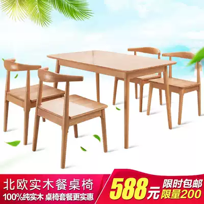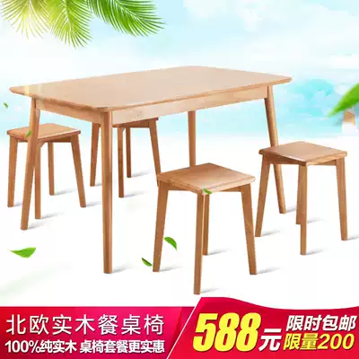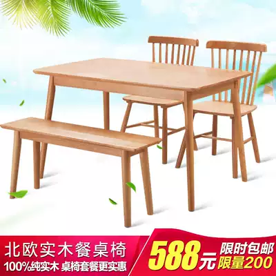 Nordic solid wood dining table and chair combination Modern simple small apartment household dining table 4 people 6 people rectangular dining table