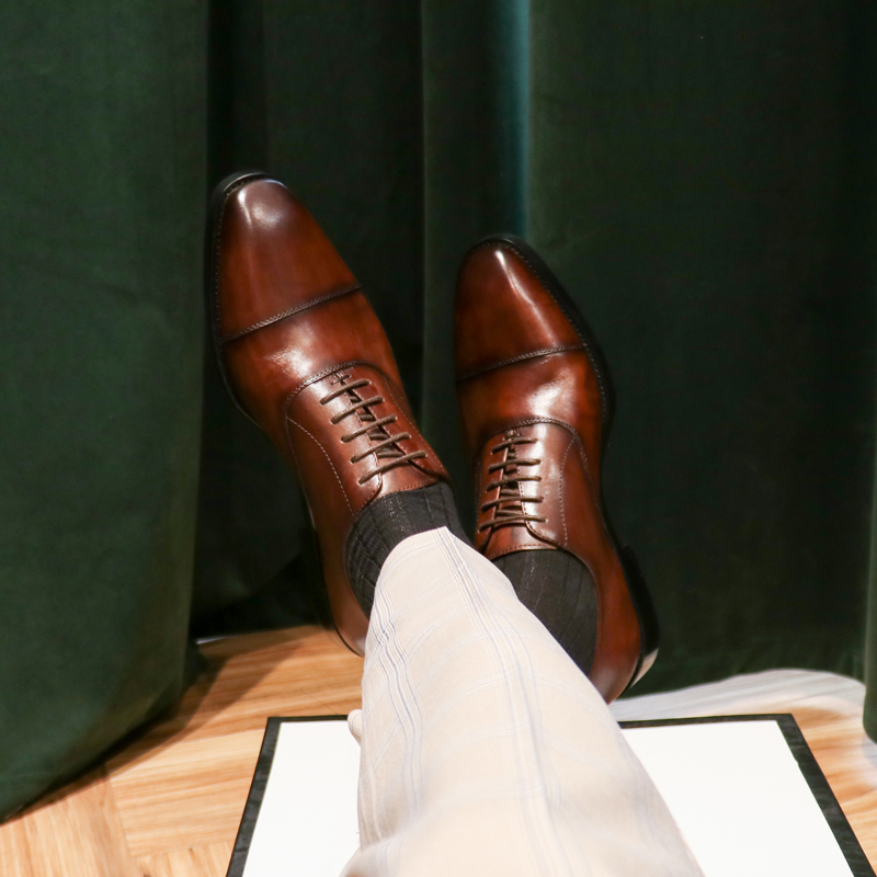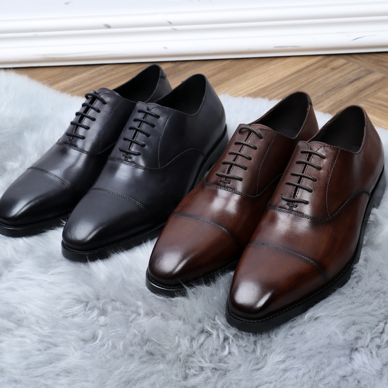 Special Korean version for business gentleman to work handcrafted color genuine leather positive dress leather shoes male lacing square head Oxford shoe youth