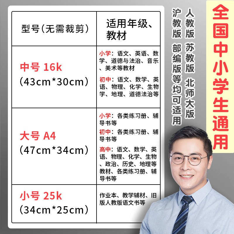 Self-adhesive transparent frosted bag book cover 16K book cover paper packaging a4 book cover sticker book film book cover book case book cover primary school student first grade two three four seven book full set