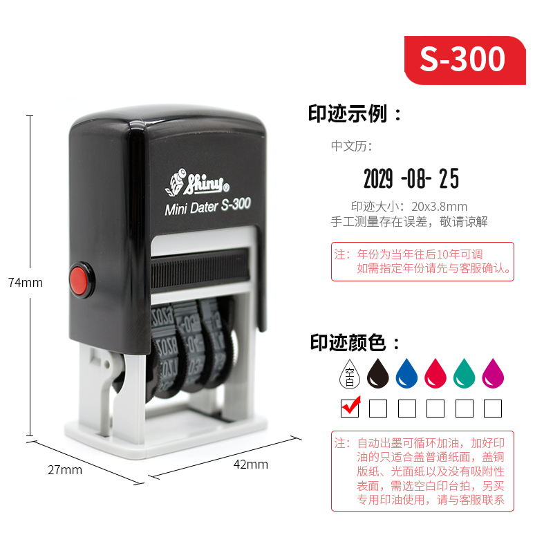 Date Chapter Automatic Ink Sony S-300 Year of the Month Seal 3x18mm Adjustable Chinese and English Calendar Material Wholesale