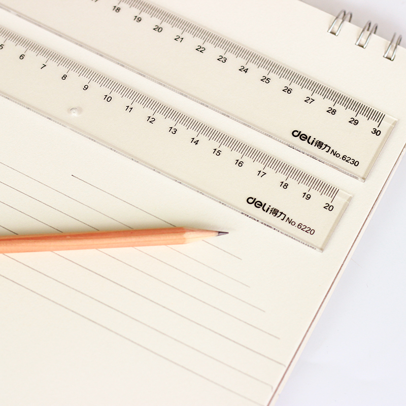 Deli ruler Transparent grid ruler Student stationery 20 cm plastic ruler Primary school students with wave ruler long ruler 30cm scale ruler Drawing ruler Measuring tools 18cm thick office supplies