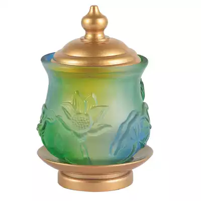 Buddha supplies glaze relief Lotus Holy water cup water purification Gong cup water supply Cup Guanyin Buddha front merit Cup