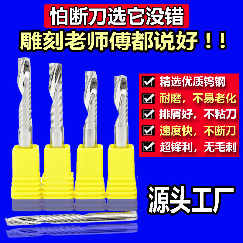 Imported single-edge spiral milling cutter 4mm6mm acrylic density board solid woodworking cutter engraving machine tungsten steel cutter