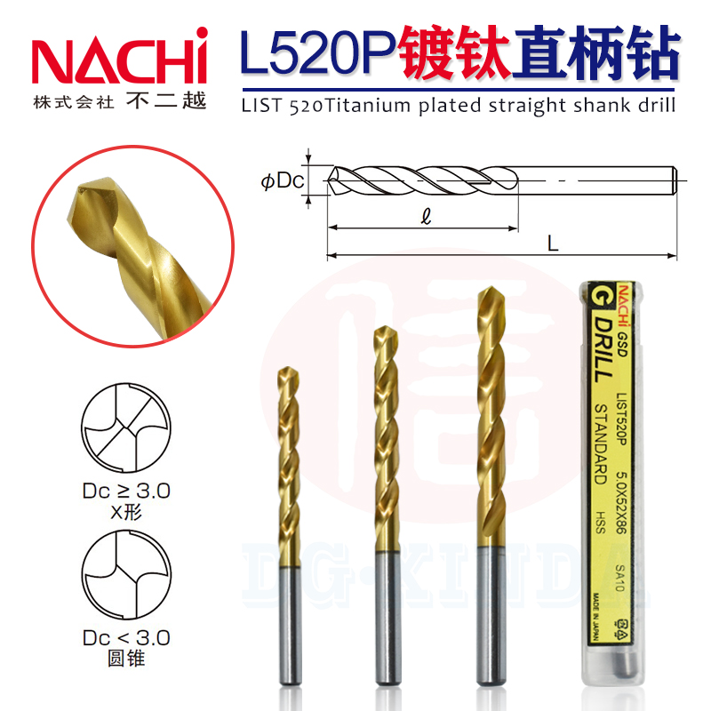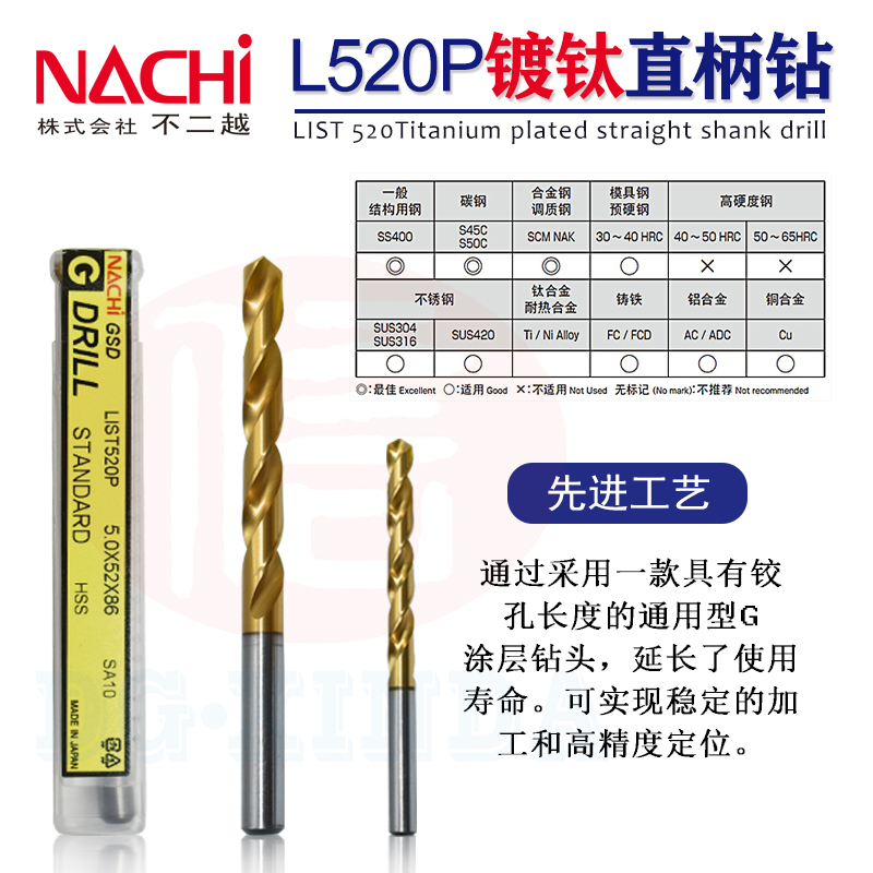 Japan imported NACHI Fuji Yue L520P universal titanium-plated drill bit G-coated TIN straight handle short handle twist drill flower