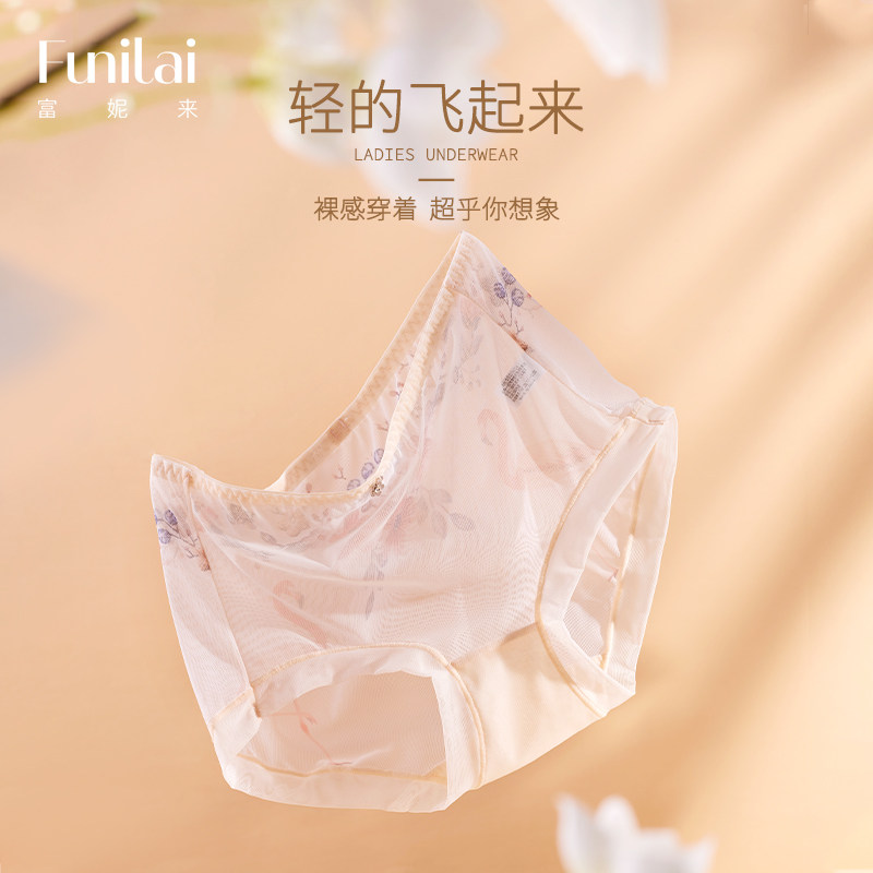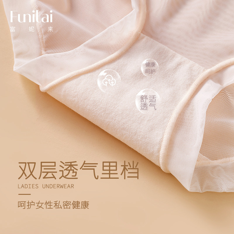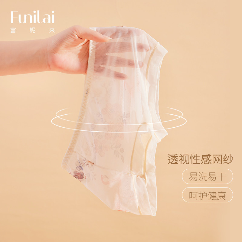 4 dress Funny for sexy women's underwear No marks transparent mesh yarn breathable pure cotton crotch Small four-corner pants Summer 3070
