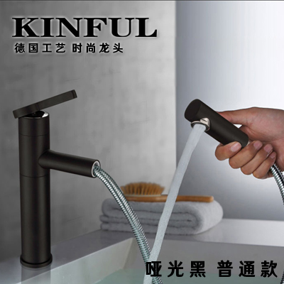 Nordic trendy face basin tap pull-out plus high table basin swivel tap black matt frosted hot and cold water