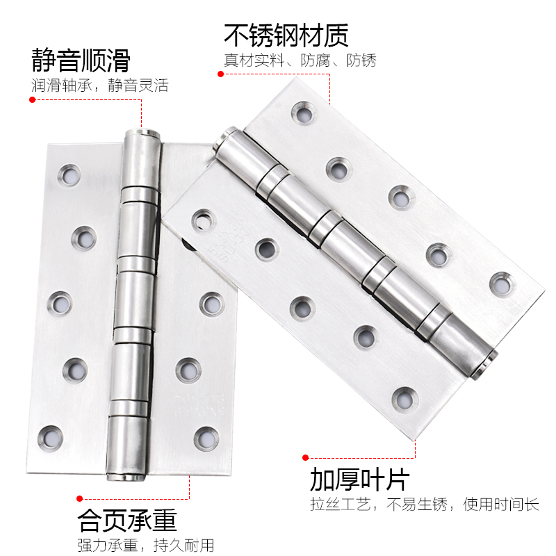 304 stainless steel hinge hinge Hardware folding 180-degree wooden door Living leaves flat open hinge 4 inches mute thickened 5-inch
