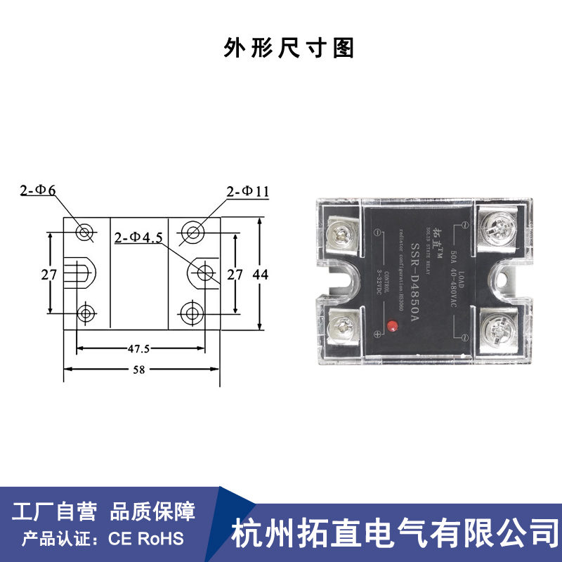 Single solid state SSR-D4850ASSR-D4850A with radiator HS3060SSR-D4850A with radiator HS6075