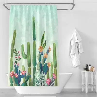 Nordic ins green planting thickened non-perforated waterproof mildew shower curtain set bathroom partition blackout curtain shower curtain