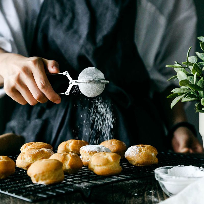 Handheld flour sieve small stainless steel powdered sugar sieve spherical closed flour sieve cocoa powder matcha mesh sieve