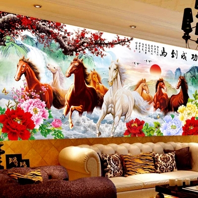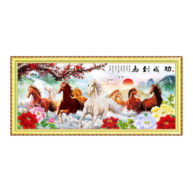 2018 new printed cross embroidered horse to successful Mayflower peony living-room with big name Eight Juntu scenery landscapes