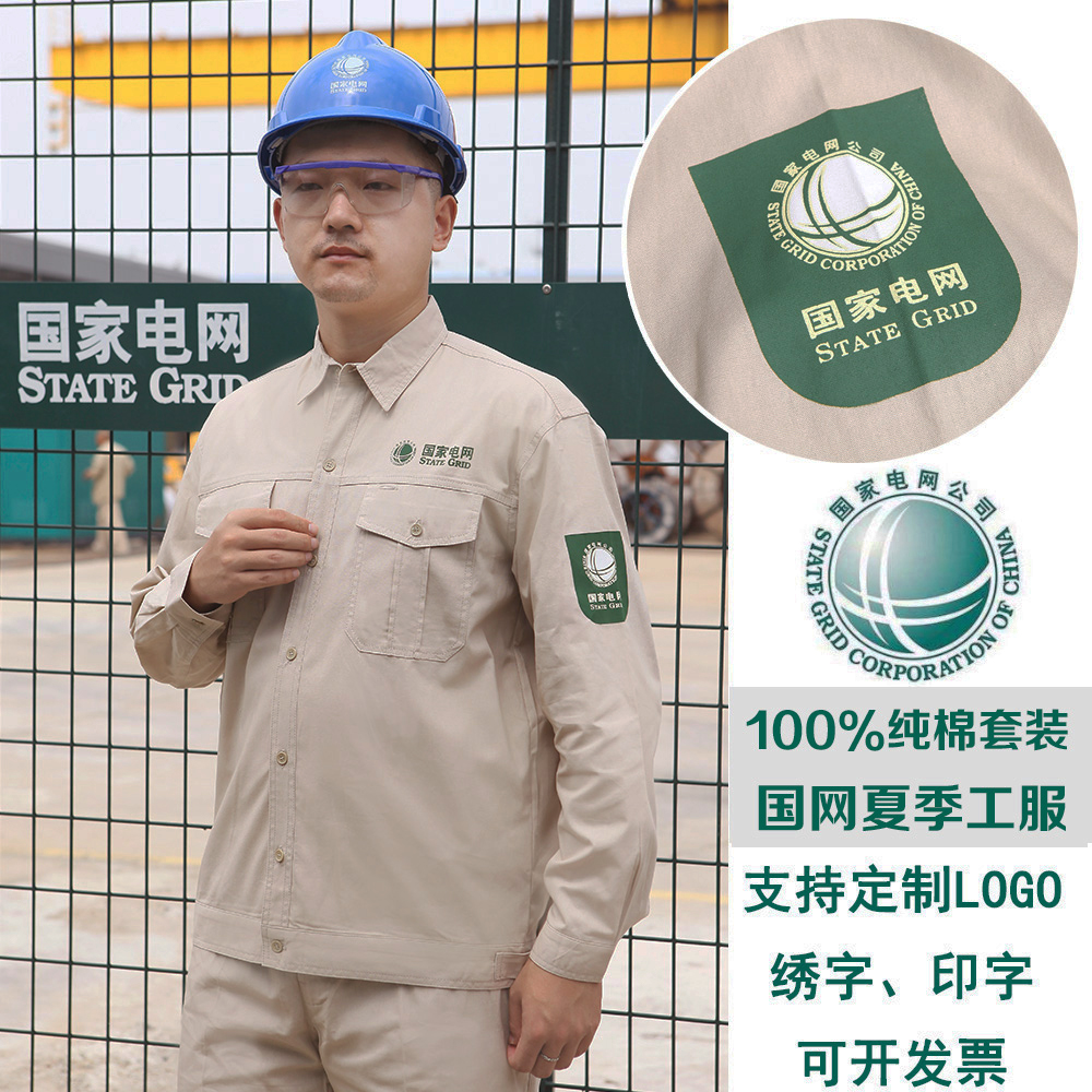 Summer State Grid Working clothes pure cotton electrician clothes power supply bureau suit All cotton Power Laufu Men's thin customize