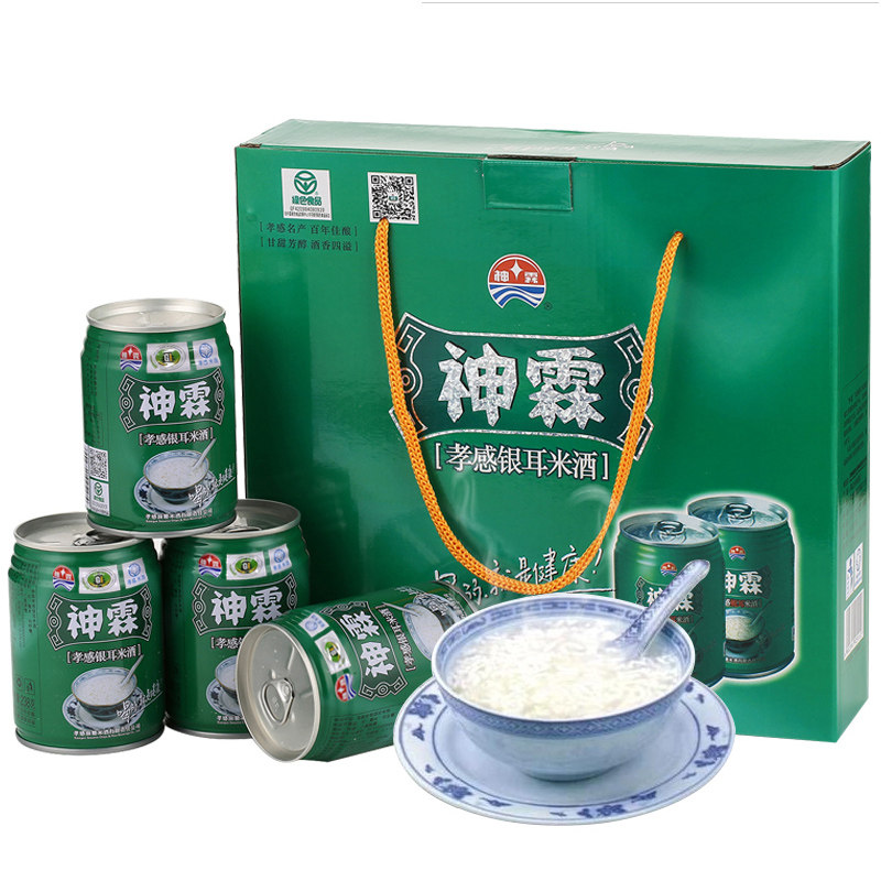 Hubei specialty Shenlin brand Xiaogan rice wine Silver fungus rice wine gift package listen to the package of rice wine open can ready-to-drink 238g*8 cans