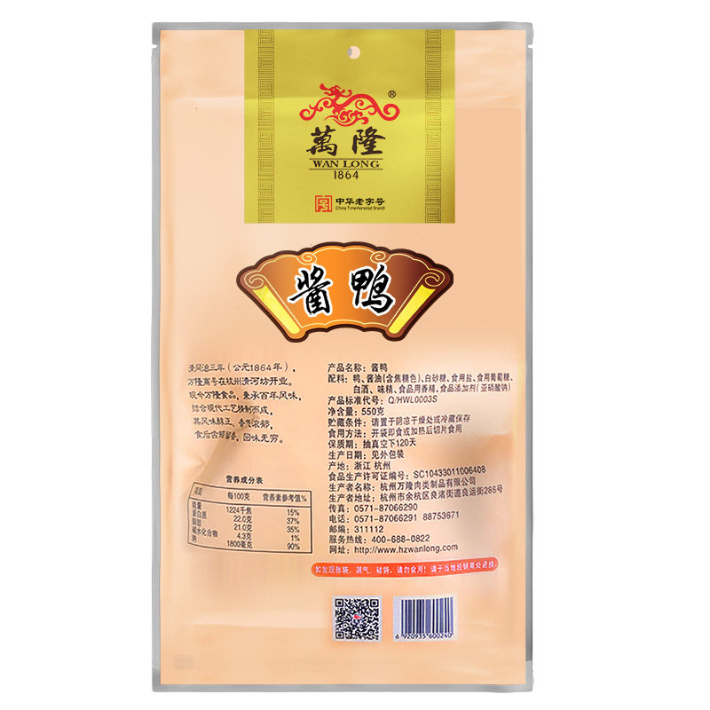 Zhejiang Hangzhou specialty Wanlong sauce duck 550g sauce plate duck braised cooked duck meat snacks Snack enterprise group purchase