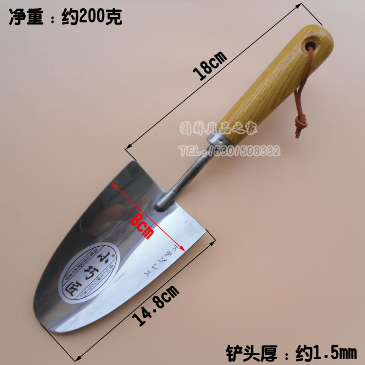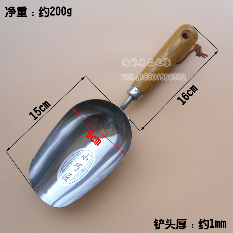 Wooden handle stainless steel bucket shovel Multi-purpose shovel Small ice shovel narrow shovel Dried fruit rice bucket shovel thickened non-slip home gardening tools