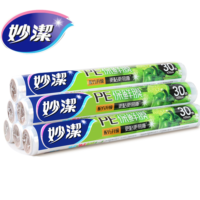 Miaji PE fresh film refrigerator food kitchen special fresh film microwave 6 rolls economy wear high temperature resistance