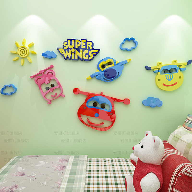 Super Fly-Man Children's Room Bedroom Cartoon Bedside Kindergarten Wall Decoration 3d Solid Acrylic Wall Sticker