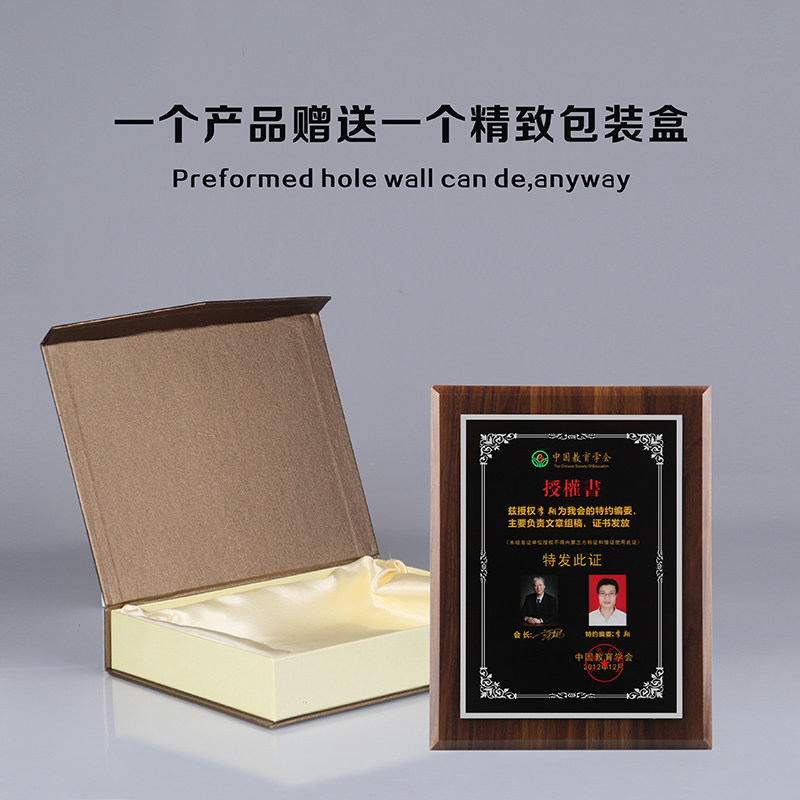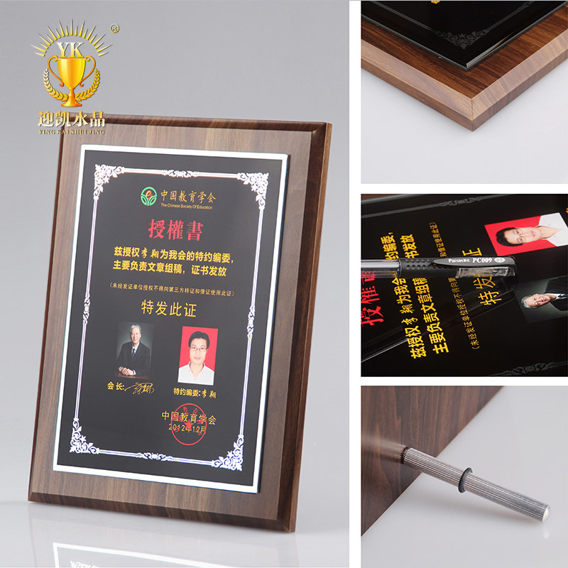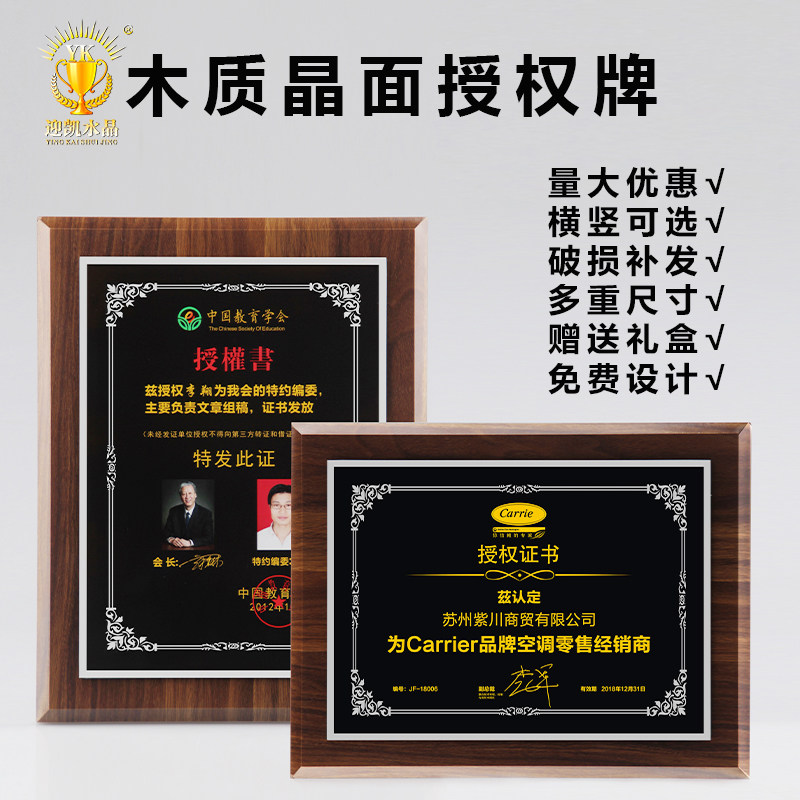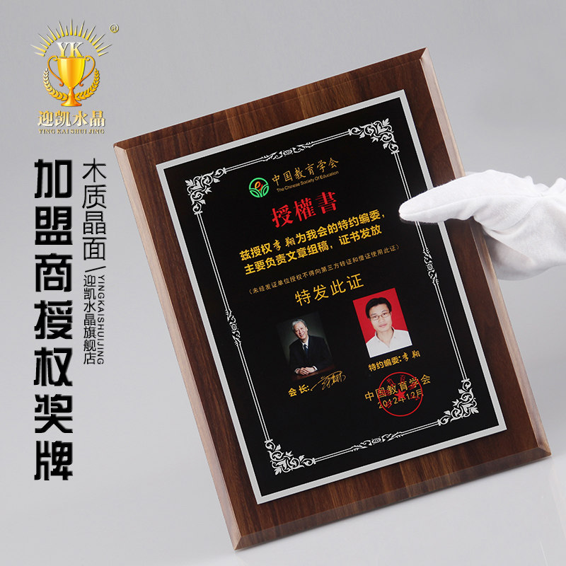 Wooden Authorisation Card Customized Crystal Medal Award Certificate Solid Wood Franchise Agent Medal Engraving with Engraved Plaque