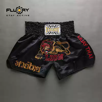2018 New Muay Thai Shorts Men's FLUORY Training Shorts Women Lion Embroidery Sanda Boxing Shorts